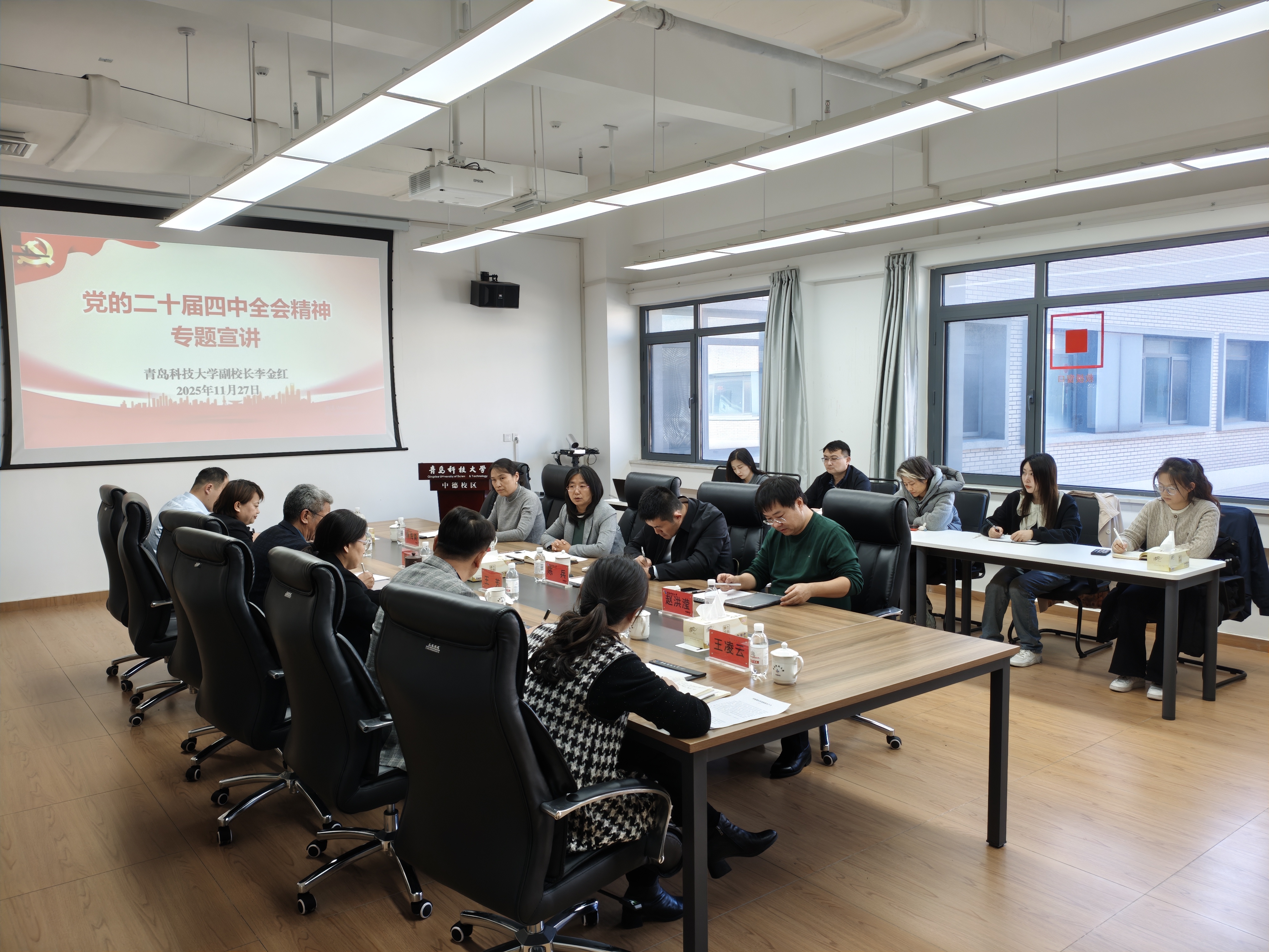 11月27日下午,副校长李金红为中德科技学院、中德工程学院师生代表宣讲党的二十届四中全会精神。国际交流合作处处长陈兵以及中德科技学院、中德工程学院领导班子成员及师生代表参加宣讲。
