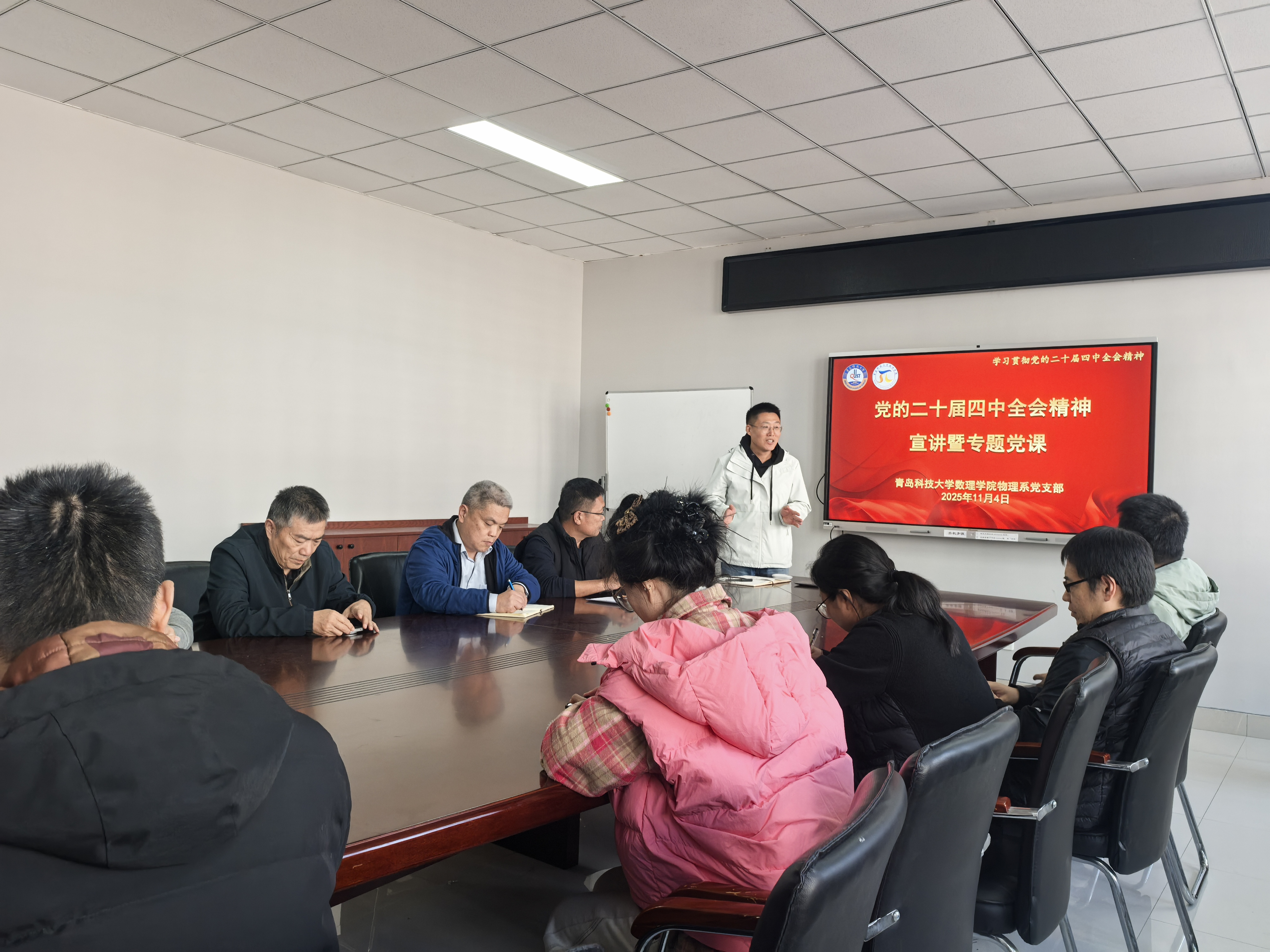 为深入学习贯彻党的二十届四中全会精神,准确把握全会核心要义与战略部署。11月4日,数理学院物理系党支部举办“党的二十届四中全会精神宣讲暨专题党课”学习活动。物理系党支部书记吕浩主讲,副院长郭广海作总结讲话,支部全体党员参加学习。